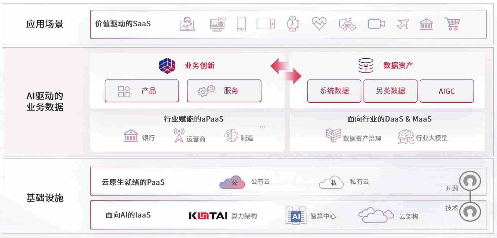 数字时代,,,,围绕企业数字化转型的关键要素,,,,尊龙集团数码开创性的提出数云融合战略和技术体系框架,,,着力在云原生、、数字原生、、AI原生和信创产业上架构产品和服务能力,,,,为处在不同数字化转型阶段的快消零售、、、、汽车、、、、金融、、、医疗、、政企、、、教育、、、、运营商等行业客户提供泛在的敏捷IT能力和融合的数据驱动能力,,,构建跨界融合创新的数字业务场景和新业务模式,,,,助力企业级客户建立面向未来的核心能力和竞争优势,,,全面推动社会的数字化、、智能化转型升级。。。