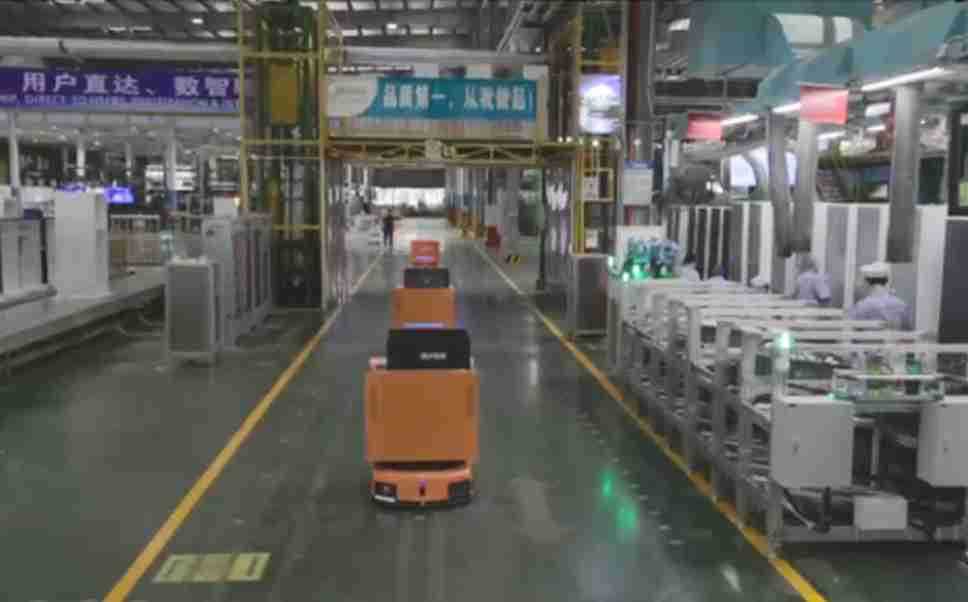 为车载冰箱物流配送打造的智能解决方案,,包含产中物流通过潜伏举升AMR搬运至线边,,产后成品物流智能仓储,,,流程包含产中物流智能齐套入库,,线边安灯叫料AMR智能配送至线边,,,成品入库、、、、出库,,,通过无人堆高车机器人,,,智能仓储管理替代人工作业管理,,实现更高存储、、、更高效率、、、更具柔性化的解决方案。。。